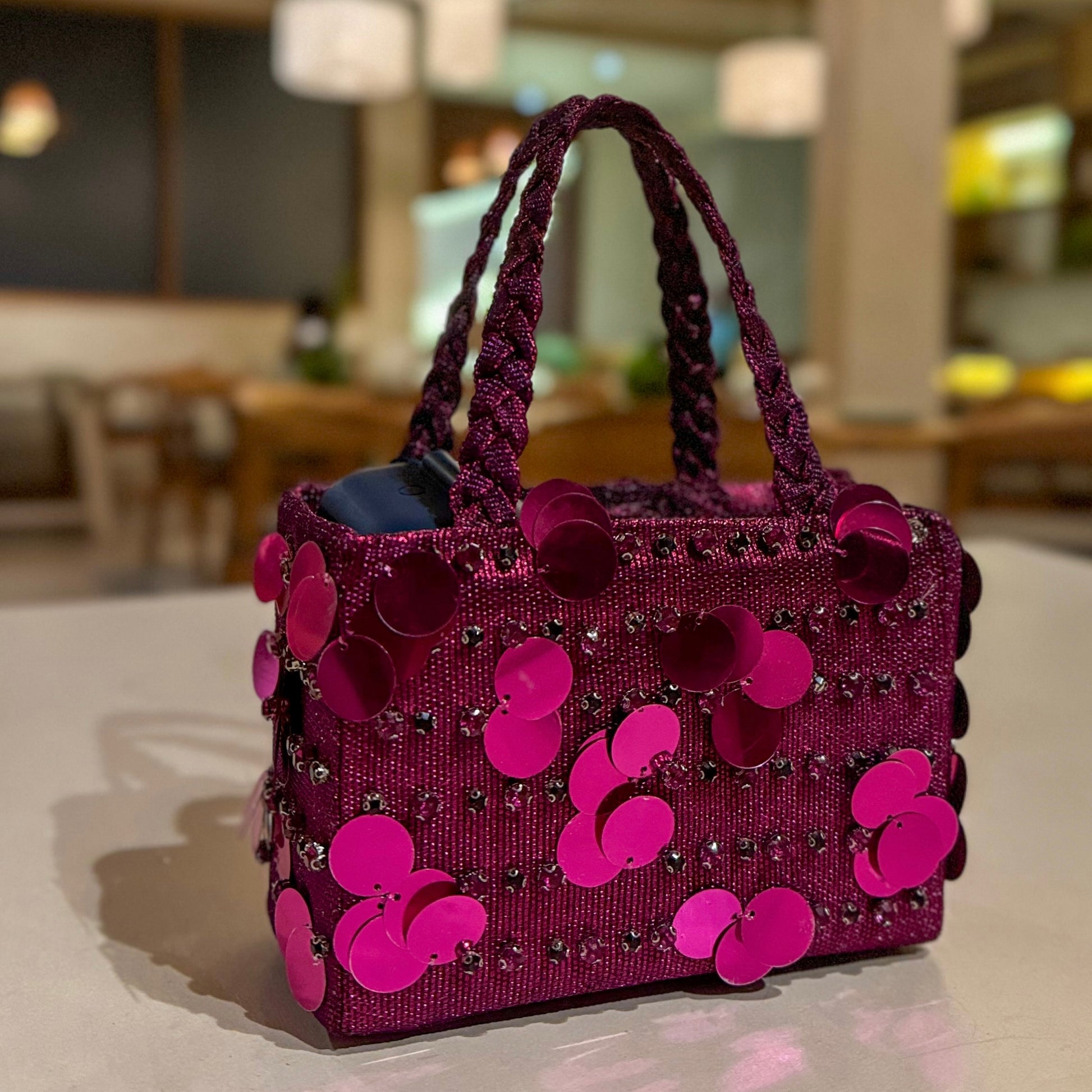Featuring two braided sturdy straps holding up a rectangular bedazzled base, the Eghayo bag is a fancy option for upgrading your party look.